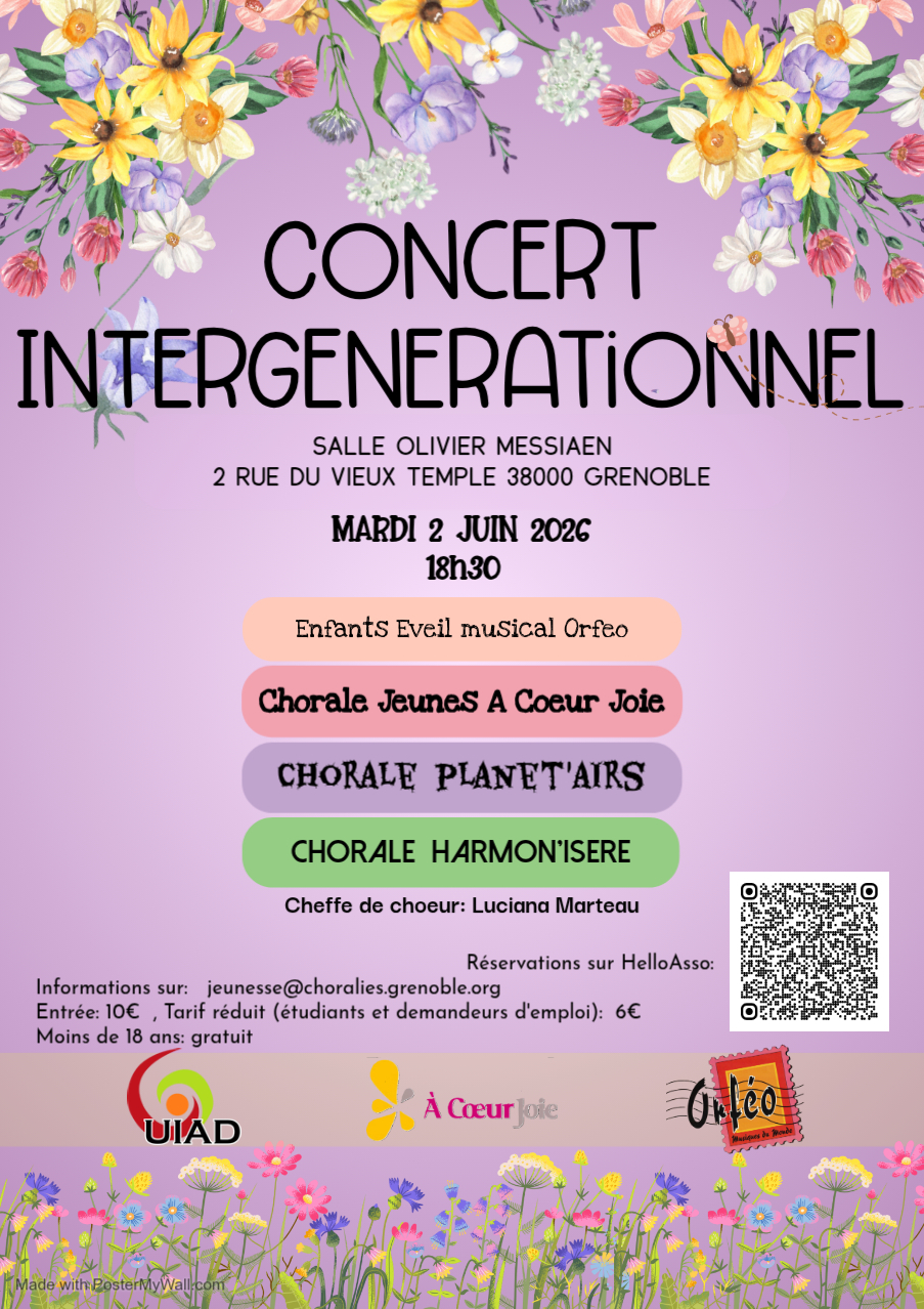 La chorale de jeunes va donner son concert avec 2 chorales d’adultes et l’atelier musical d’éveil musical.